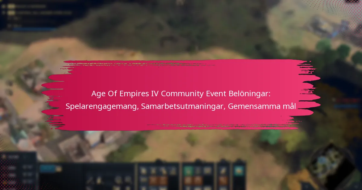 Belöningarna för community-evenemang i Age of Empires IV är incitament som är utformade för att engagera spelare genom samarbetsutmaningar och gemensamma mål. Dessa belöningar kan inkludera exklusiva föremål i spelet, prestationer och säsongsbonusar som förbättrar den övergripande spelupplevelsen.