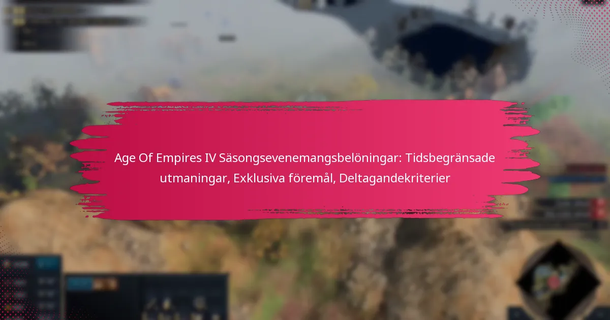 För att delta i säsongsevenemanget i Age of Empires IV måste spelarna uppfylla specifika kriterier relaterade till kontostatus, nivå, geografisk plats och tekniska specifikationer. Att förstå dessa krav säkerställer en smidig upplevelse och tillgång till exklusiva belöningar.